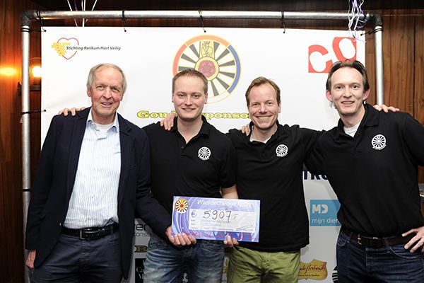 Na afloop van de veiling kon Rob Borgonjen, voorzitter van de Ronde Tafel 177 een cheque t.w.v. € 5907,- overhandigen aan de heer Weening van Stichting Renkum Hart Veilig. Nog tijdens de uitreiking werd dit bedrag door één van de gasten aangevuld tot € 6000,-! De heer Weening gaf te kennen zeer verheugd te zijn met dit bedrag, waarmee de stichting bijna 3 extra AED’s in Oosterbeek kan realiseren.