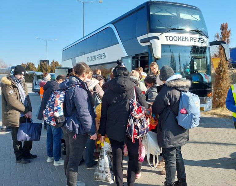 Vervolgens vol aan de bak om de reis te organiseren. Allereerst een dubbeldekker touringcar geregeld met een aantal losse bestelbusjes erbij. Vervolgens een arts geregeld (ook Tafelaar), een tolk opgespoord, een planning gemaakt, de route uitgestippeld, communicatiemiddelen geregeld en nog veel meer. Dankzij onze contacten met Agnieszka en Anna, twee Poolse ziekenhuis-coördinatrices die de opvanglocatie in Korczowa (onze doellocatie) kennen, was er goed zicht op de hulpvraag.